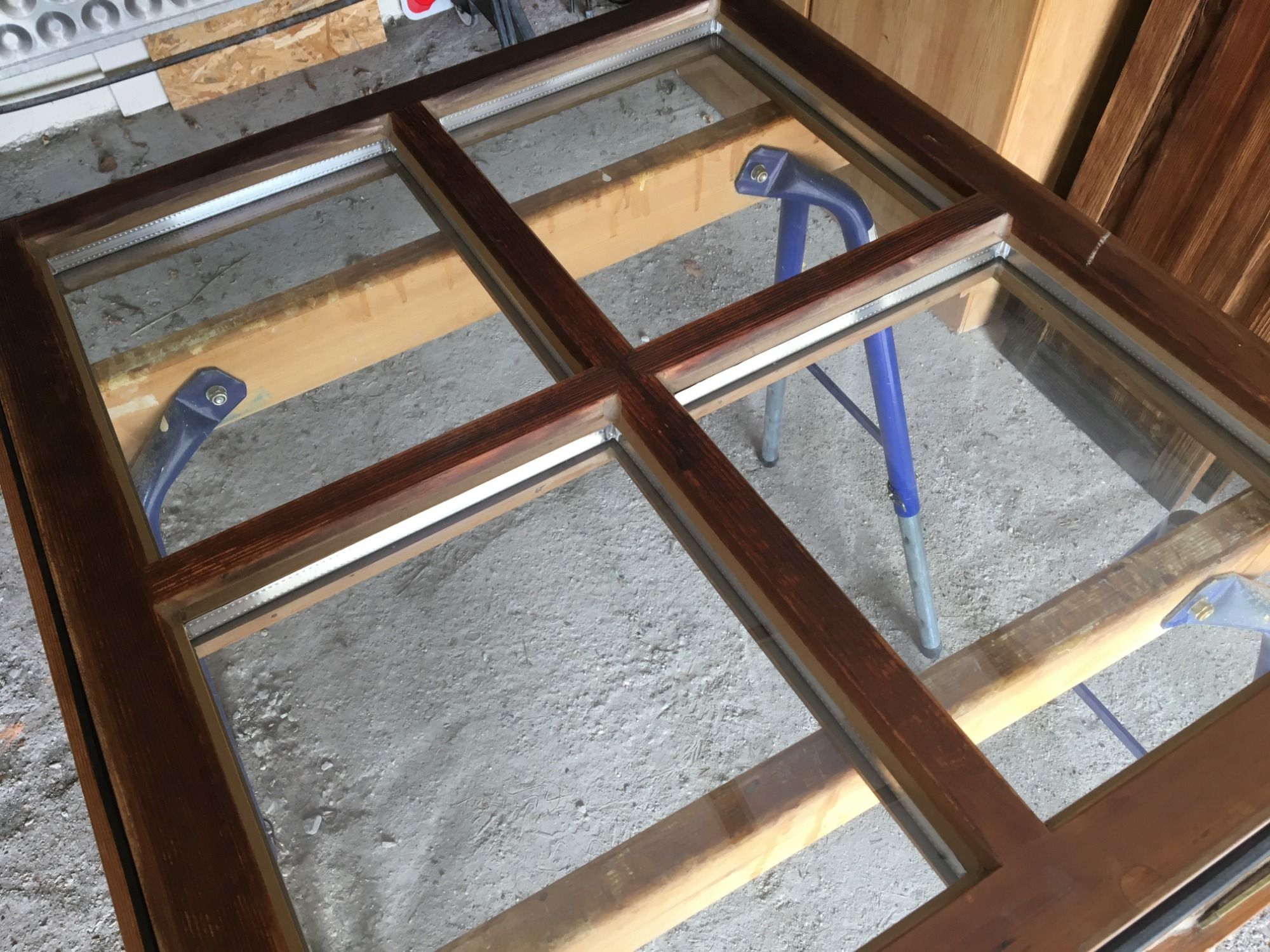Instandsetzung alter Holzteile, wie zum Beispiel Balkone, Fensterrahmen, Fensterläden durch abschleifen und lasieren
